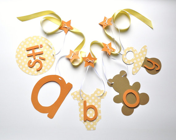 This banner by Parker Prints ($15.50) is unique and sweet. It's perfect to hang over a refreshment table. And, if you're not going to find out the gender then the banner can read "welcome baby".
